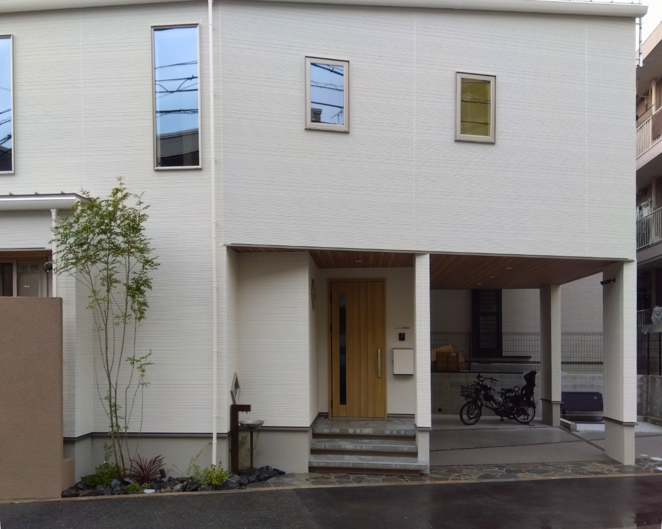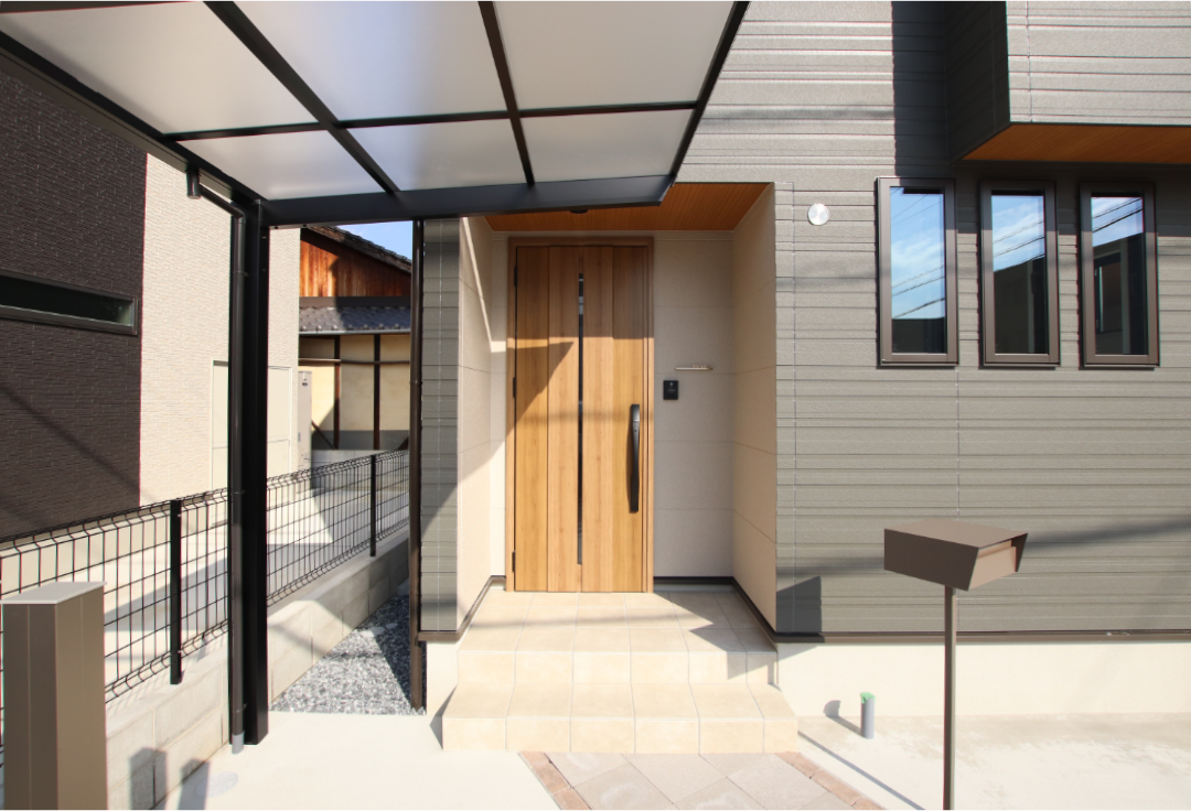 【 新築外構 施工事例 】 車や自転車を停めてポストをチェックしたら、そのままスムーズに玄関へ。 …